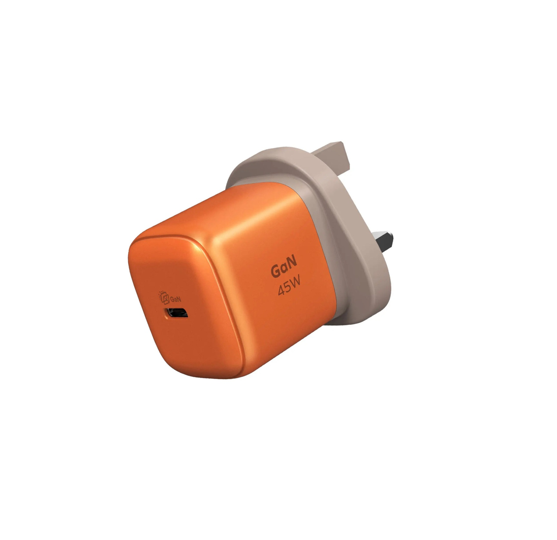 A compact and efficient charger utilizing GaN technology to deliver 45W of power through a single USB-C PD 3.0 port. Its ultra-portable design makes it ideal for travel, and it includes advanced safety features like overcurrent, overvoltage, short circuit, and overtemperature protection. Compatible with a wide range of devices, including smartphones, tablets, and laptops.